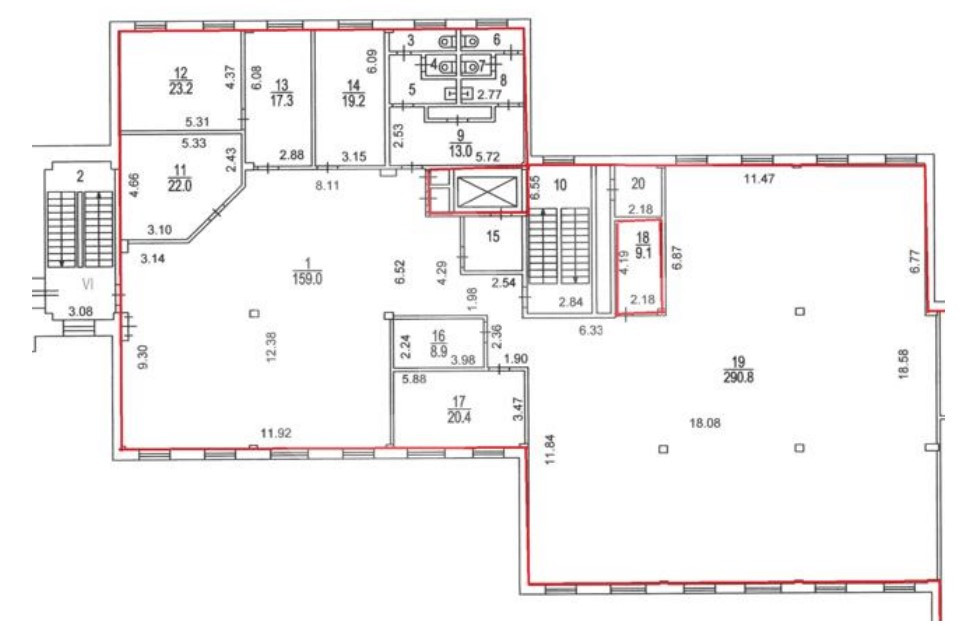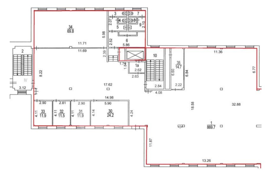 Этот лот состоит из нескольких помещений: 2343 кв. м., 727 кв. м., 872 кв. м., 897 кв. м. и 872 кв. м.
