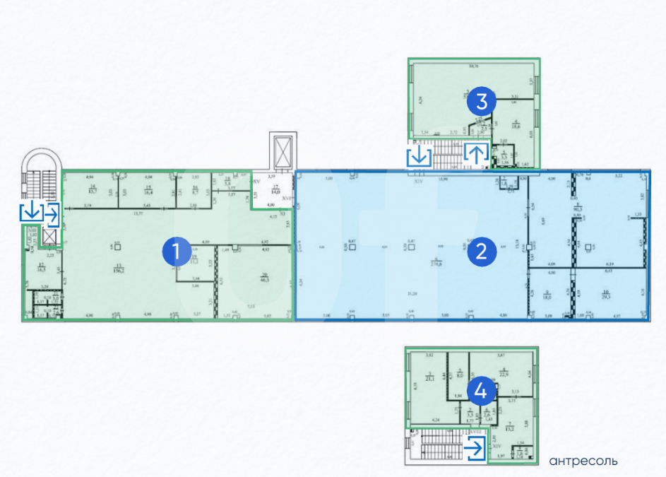 Этот лот состоит из нескольких помещений: 416 кв. м., 300 кв. м. и 412 кв. м.
