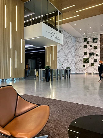 Включает - зоны опен спейс, переговорные комнаты, отдельные кабинеты, кофе-поинт с зоной отдыха, кухни на каждом этаже, ресепшен, гардеробную, сан.узел и душевую. Отдельный вход. Этаж: 4. Планировка: смешанная. Офисная отделка. Мебель. Тип налогообложения: С НДС. Эксплуатация включена. Коммунальные платежи оплачиваются отдельно. Налоговая: 05. Лифты: Есть. Вентиляция: Приточно-вытяжная. Кондиционирование: Центральное. Безопасность: Круглосуточная охрана, Контроль доступа, Система пожаротушений, Видеонаблюдение. Провайдеры: . Парковка: Подземная, Наземная. Лот 82487-125