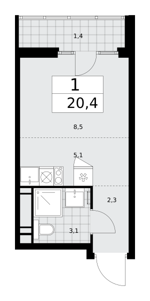Продаётся квартира-студия, площадью 20,4 кв. м на 13-м этаже дома комфорт-класса в ЖК "Деснаречье". Квартира с функциональной планировкой: большие окна, высота потолка 2,99 м, балкон.