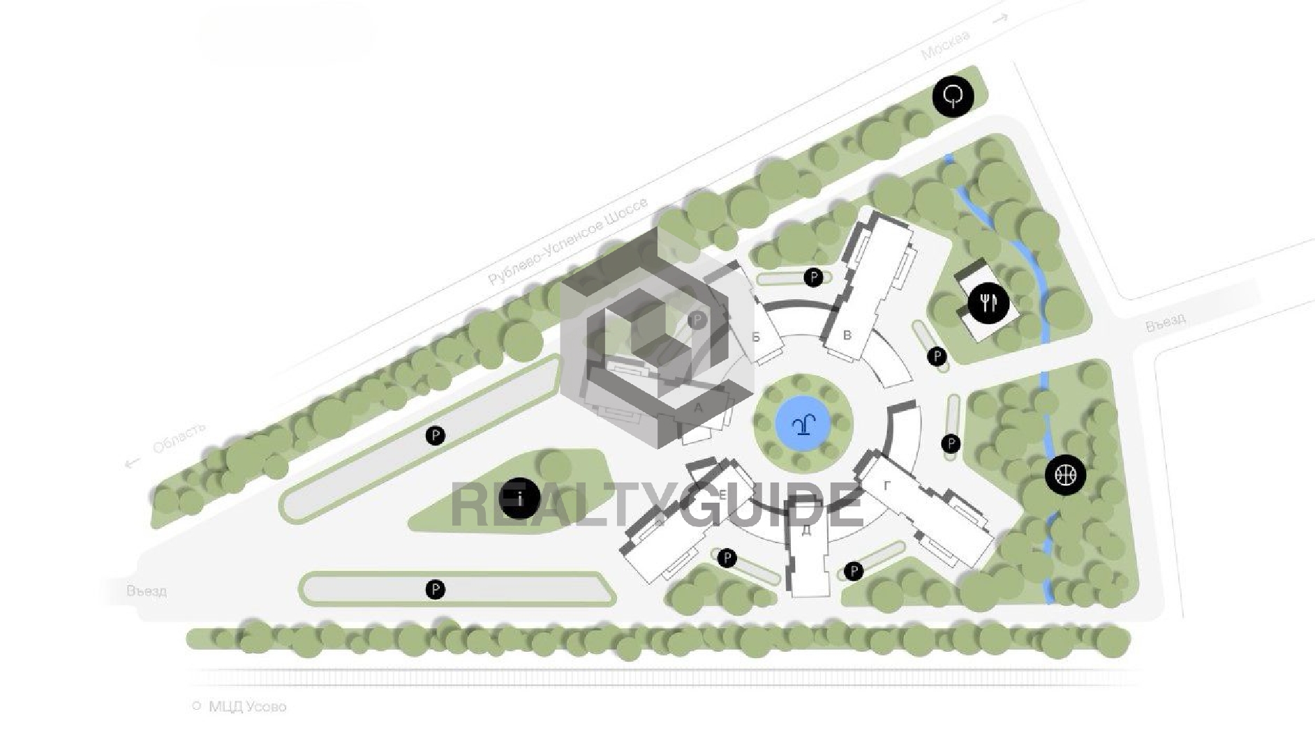 Деловой центр «Резиденция на Рублевке - В» расположен по адресу: 100В, село Усово, Московская область, Одинцовский городской округ