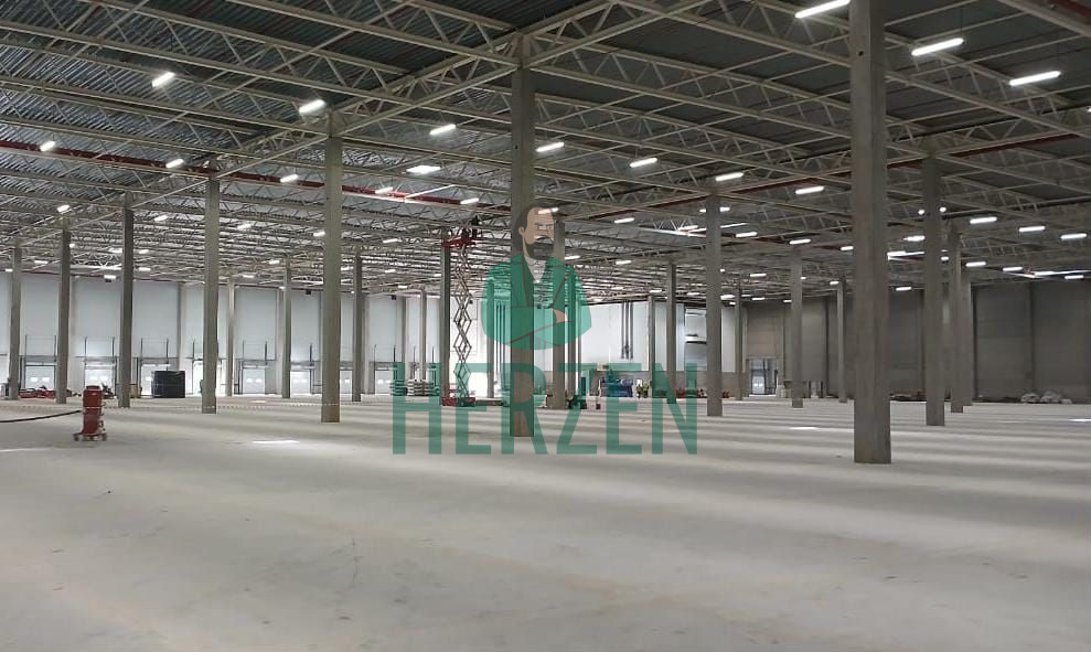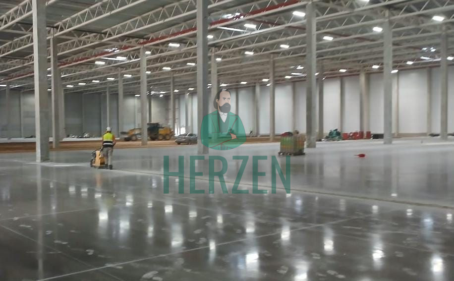 Ровный бетонный пол с антипылевым покрытием.