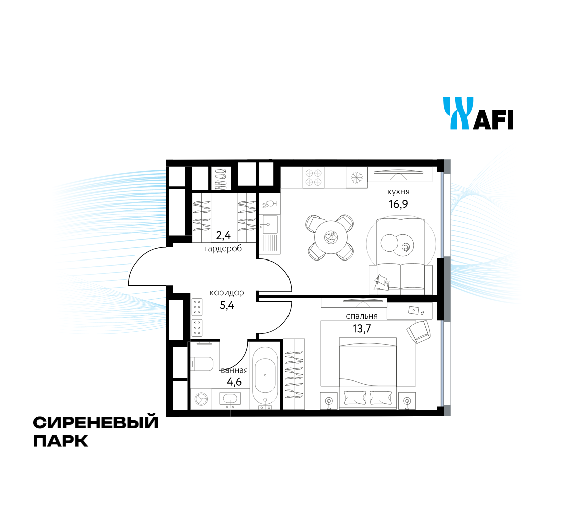 Купить 1к квартиру 42 м² в ЖК Сиреневый парк