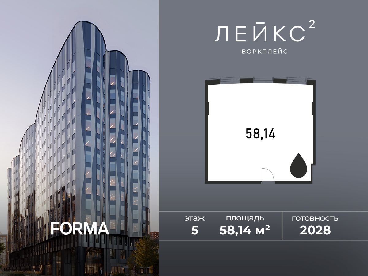 Купить офис 58 м² в БЦ ЛЭЙКС 2 воркплейс