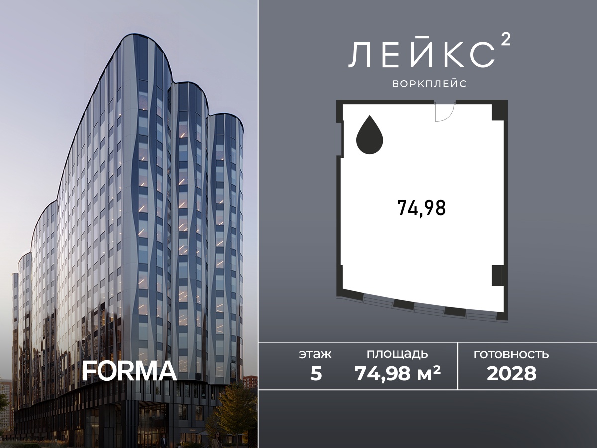 Купить офис 74 м² в БЦ ЛЭЙКС 2 воркплейс