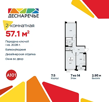 Продается 1-к. квартира номер 606 общей площадью 37.1 кв.м. на 18-м этаже 40 этажного дома, корпус 2.3. С отделкой White Box.