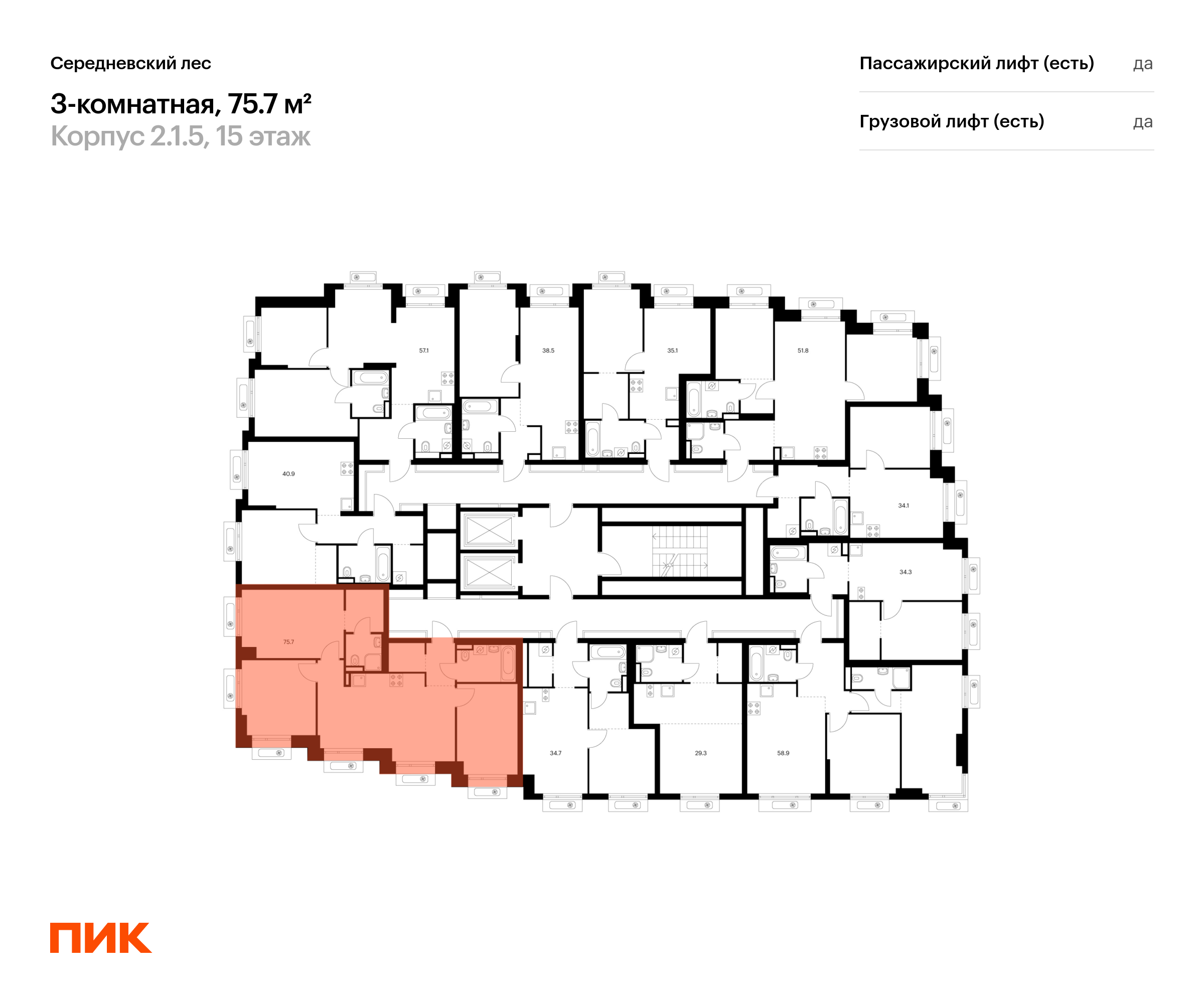 Продаётся 3-комн.квартира площадью 75.70 кв.м на 15 этаже 16 этажного дома (Корпус 2.1.5, секция 5) проекта ПИК Середневский лес. Светлый просторный подъезд на уровне земли, функциональная планировка, большие окна, с отделкой.