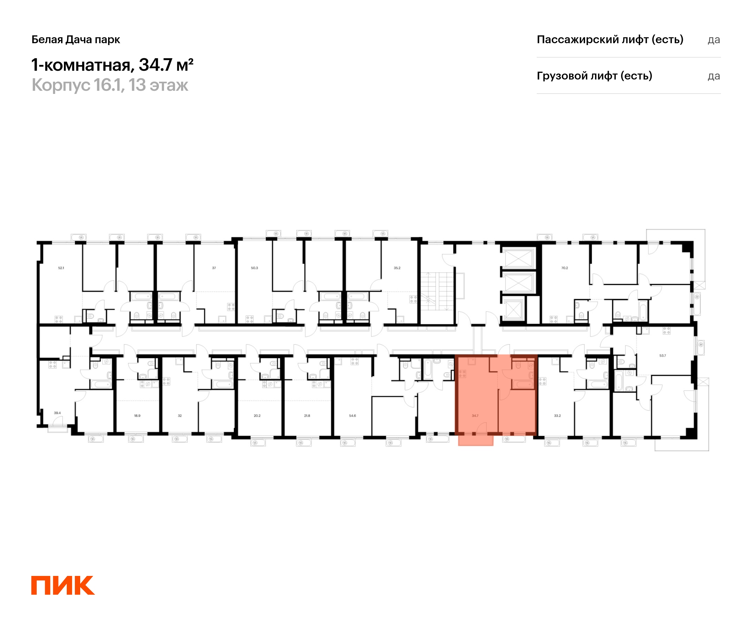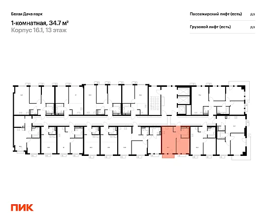 Продаётся 1-комн.квартира площадью 34.70 кв.м на 13 этаже 25 этажного дома (Корпус 16.1, секция 1) проекта ПИК Белая Дача парк. Светлый просторный подъезд на уровне земли, функциональная планировка, большие окна, с отделкой.