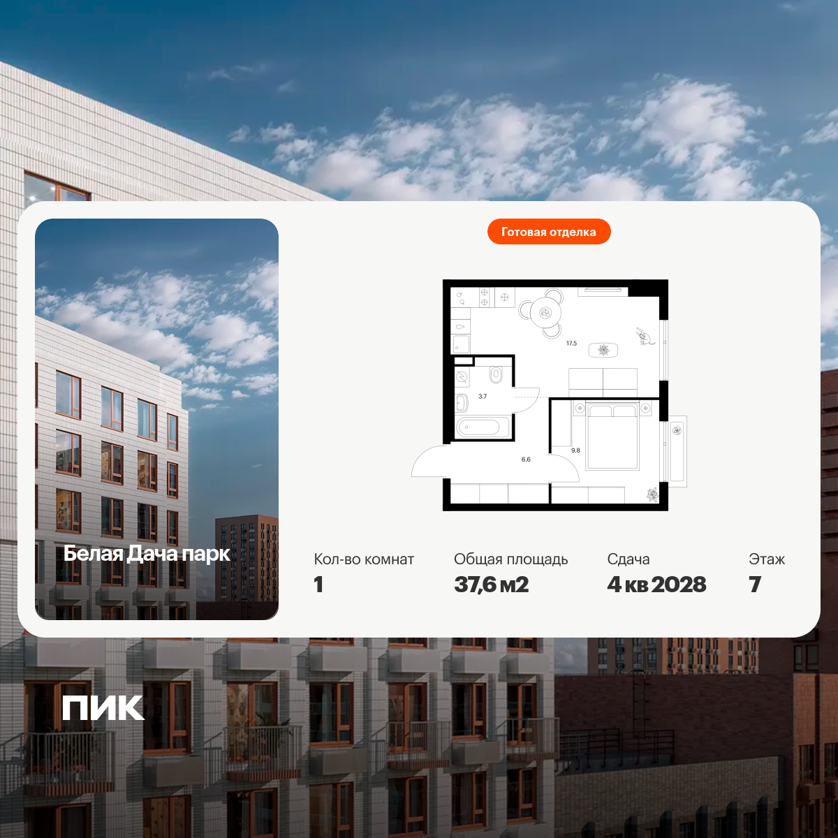 Купить 1к квартиру 41 м² в ЖК Ильинские луга