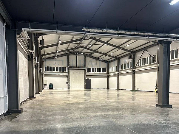Свободная планировка без колонн. Отопление автономное газгольдер, высота потолков 7 м, естественное и электрическое освещение, бетонный пол с антипылевым покрытием, электрическая мощность 150 кВт (возможно больше), ХВС, септик, огороженная асфальтированная территория.
