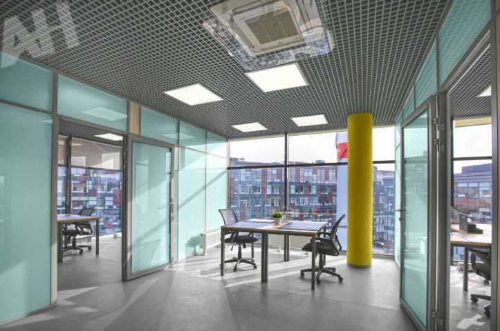 Здание выполнено в архитектурном стиле хайтек с панорамным остеклением, что обеспечивает обилие естественного света и великолепные видовые характеристики. Пространство организовано для создания четкой рабочей обстановки, способствующей эффективному решению задач. Инфраструктура включает зоны для отдыха, звукоизолированные переговорные комнаты, полноценную кухню, санузлы в блоке и мокрую точку.