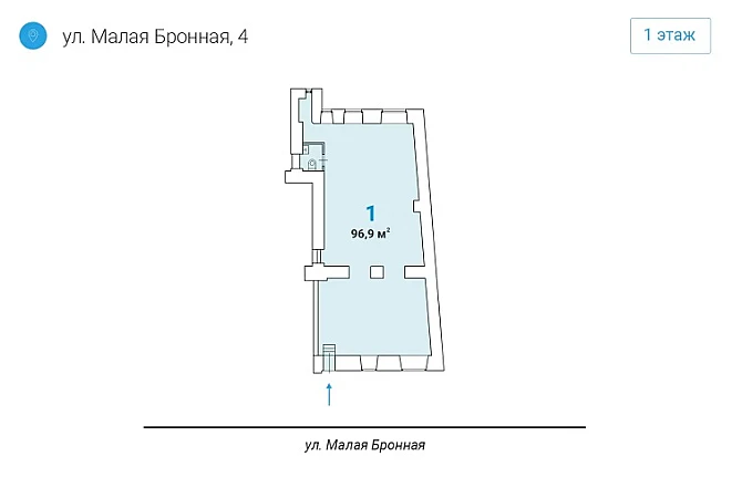 Номер лота на нашем сайте: 45014. Предлагается на продажу помещение 96,9 кв.м. на Малой Бронной улице, ЦАО, г. Москва. Шаговая доступность от ст. метро Пушкинская , Тверская и Чеховская . Отличная видимость и транспортная доступность.