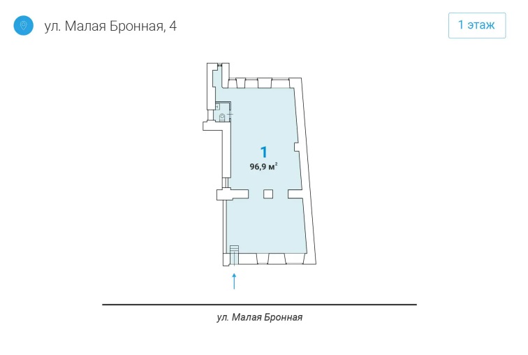 Номер лота на нашем сайте: 45015. Предлагается в аренду помещение 96,9 кв.м. на Малой Бронной улице, ЦАО, г. Москва. Шаговая доступность от ст. метро Пушкинская , Тверская и Чеховская . Первая линия, отличная видимость, витрины и транспортная доступность.
