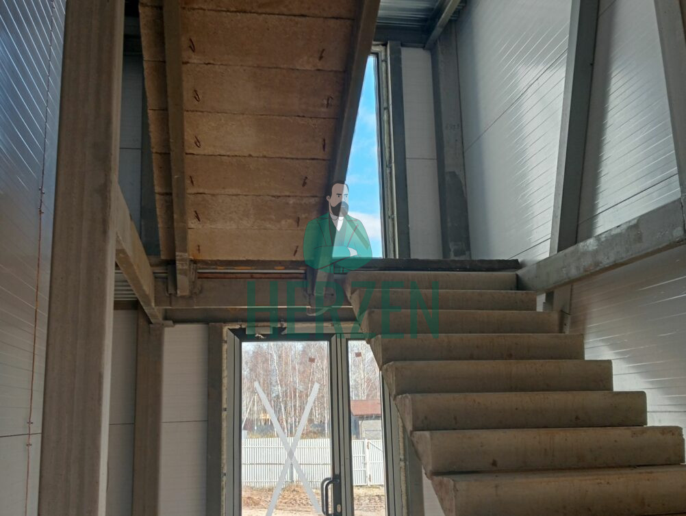 Высота потолка: первый этаж 5 м; второй этаж 4 м.
