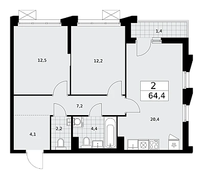 Купить 2к квартиру 77 м² в ЖК Южная Битца