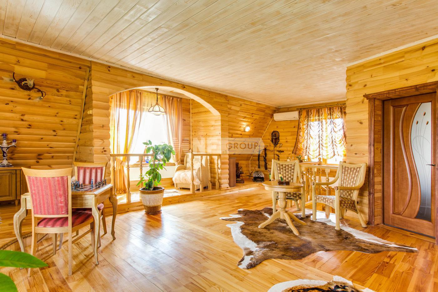 Второй дом выполнен в экостиле, деревянный, со встроенной баней, 3 спальни, можно сделать биллиардную, с подполом и балконом.
