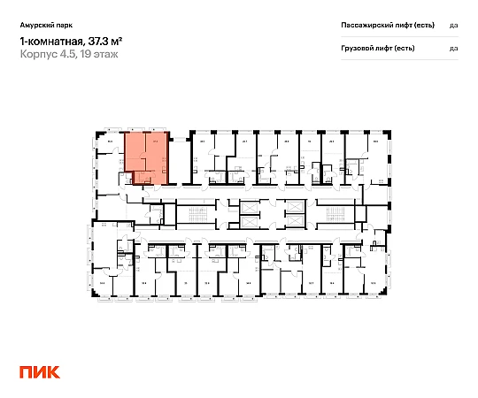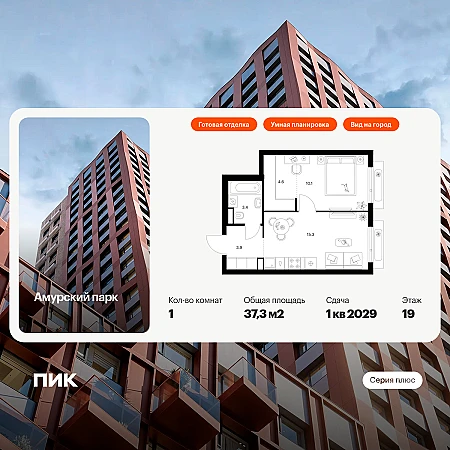 Продаётся 1-комн.квартира площадью 37.30 кв.м на 19 этаже 27 этажного дома (Корпус 4.5, секция 6) проекта ПИК Амурский парк. Светлый просторный подъезд на уровне земли, функциональная планировка, большие окна, с отделкой.