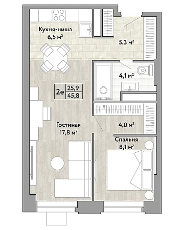 Купить 1к квартиру 45 м² в ЖК Новые Смыслы