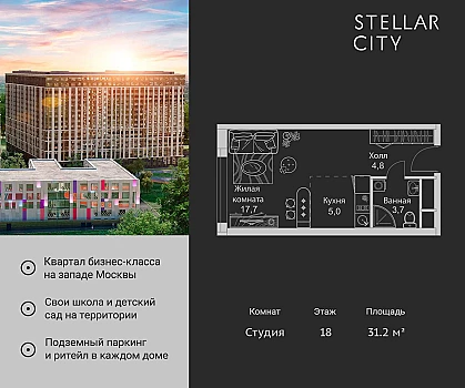 Купить 1к квартиру 44 м² в ЖК 1‑й Химкинский