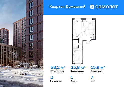 Купить 1к квартиру 48 м² в ЖК Акценты