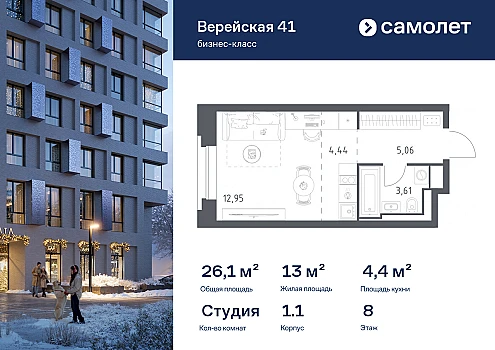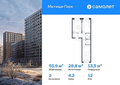 Купить 1к квартиру 36 м² в ЖК Акценты