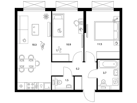 Купить 1к квартиру 36 м² в ЖК Молжаниново