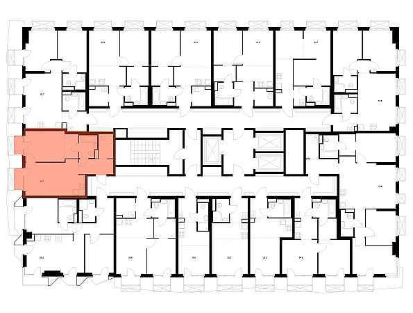 Лобби «2-го Иртышского» выполнены по индивидуальному дизайн-проекту. Оттенки камня в сочетании с текстурой под дерево, декоративным потолком и круглыми светильниками на входах в лифты добавят интерьеру элегантности.