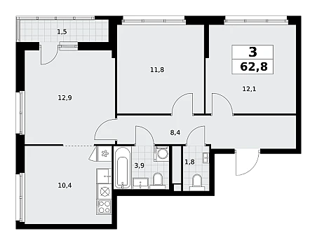 Купить 1к квартиру 42 м² в ЖК 2-й Иртышский