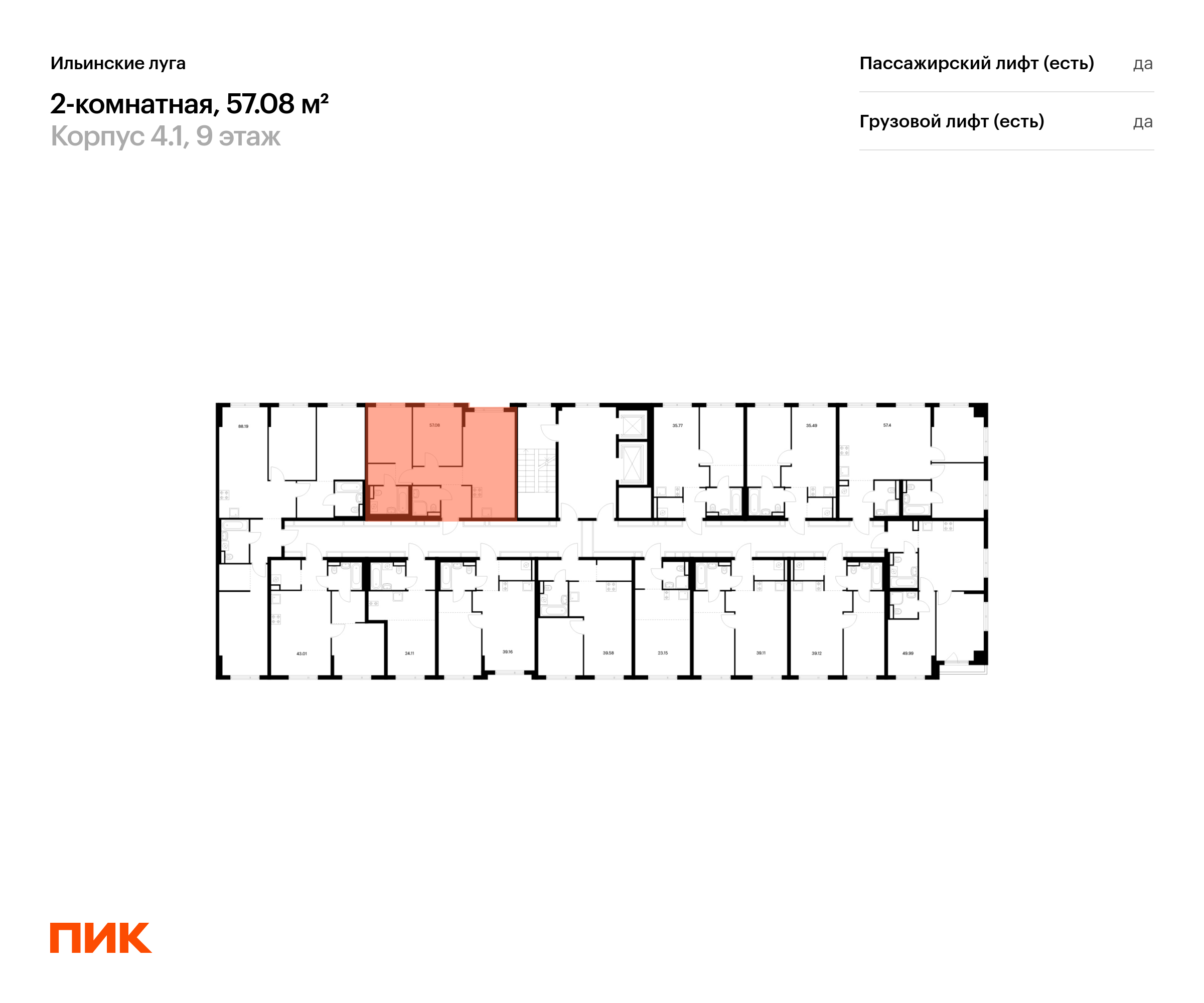 Продаётся 2-комн.квартира площадью 57.08 кв.м на 9 этаже 9 этажного дома (Корпус 4.1, секция 1) проекта ПИК Ильинские луга. Светлый просторный подъезд на уровне земли, функциональная планировка, большие окна, с отделкой.