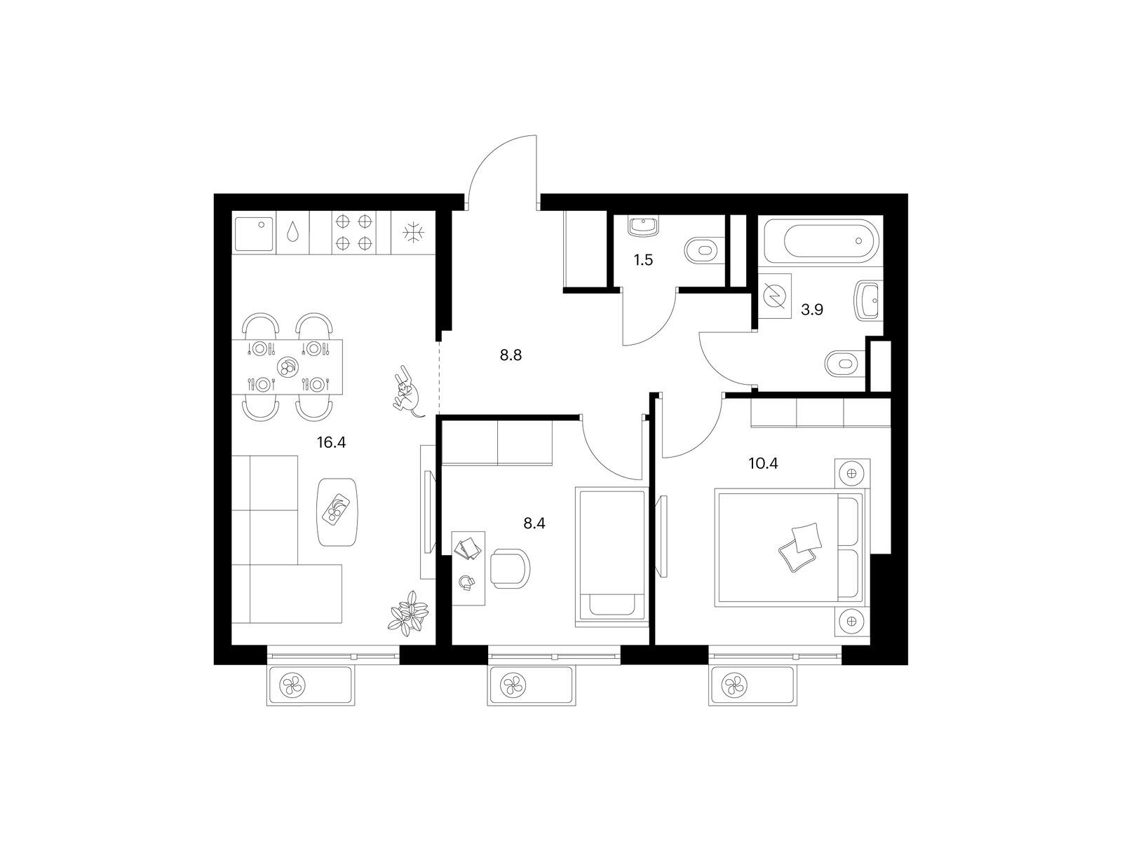 Купить 2к квартиру 49 м² в Белая Дача парк
