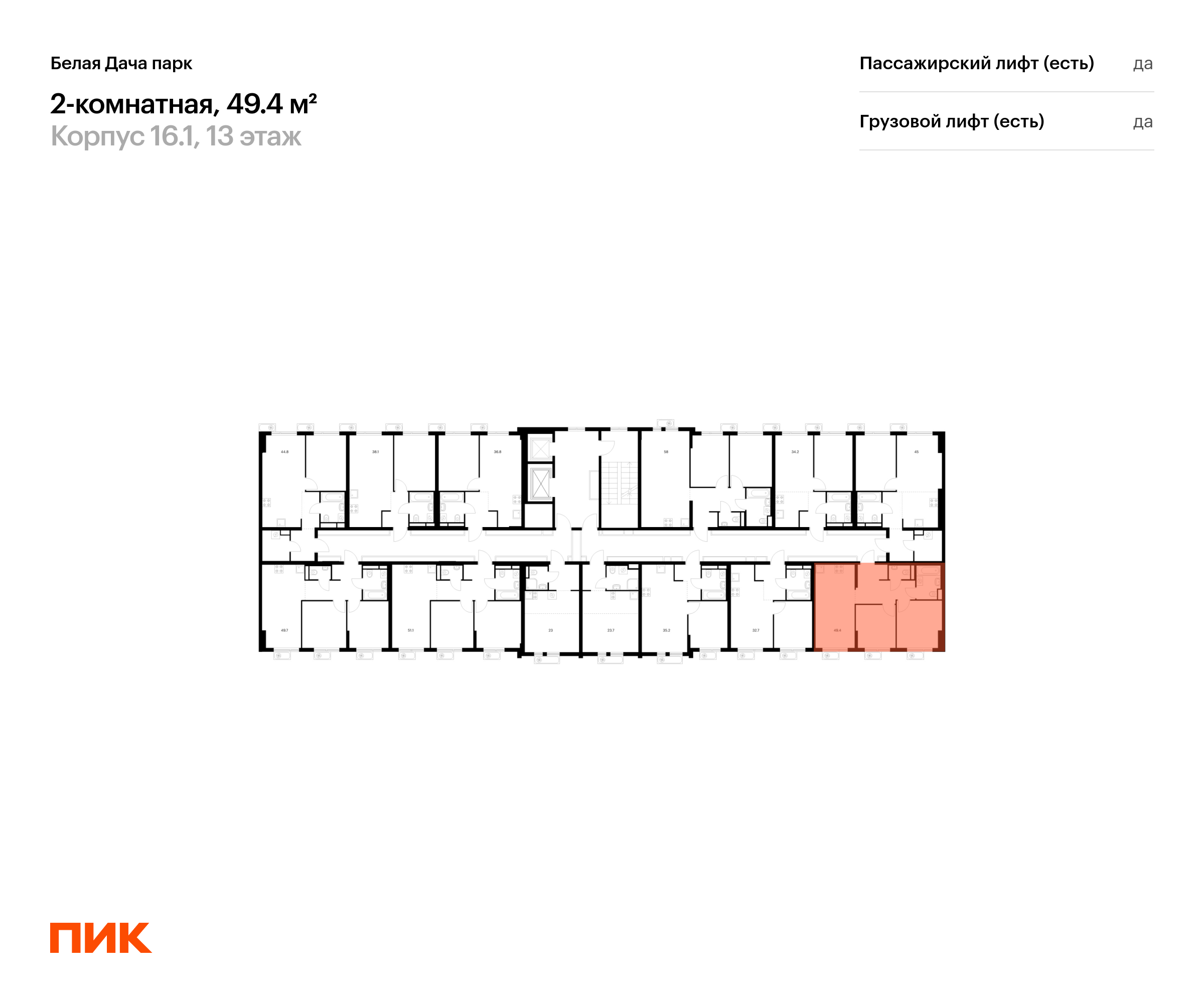 Продаётся 2-комн.квартира площадью 49.40 кв.м на 13 этаже 14 этажного дома (Корпус 16.1, секция 2) проекта ПИК Белая Дача парк. Светлый просторный подъезд на уровне земли, функциональная планировка, большие окна, с отделкой.