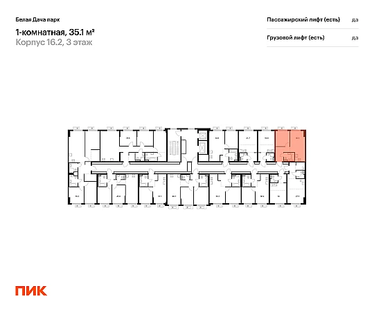 Продаётся 1-комн.квартира площадью 35.10 кв.м на 3 этаже 15 этажного дома (Корпус 16.2, секция 6) проекта ПИК Белая Дача парк. Светлый просторный подъезд на уровне земли, функциональная планировка, большие окна, с отделкой.