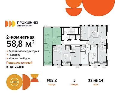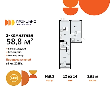 Квартира находится в корпусе 7.7. Дом монолитный, одноподъездный, высотой 22 этажа. На этаже 9 квартир. В подъезде 1 пассажирский и 2 грузовых лифта. Начало строительства - 2 квартал 2025 года. Окончание строительства - 1 квартал 2028 года. Оформление сделки по договору долевого участия.