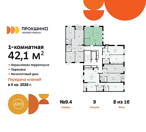 Купить 1к квартиру 42 м² в ЖК "Прокшино"