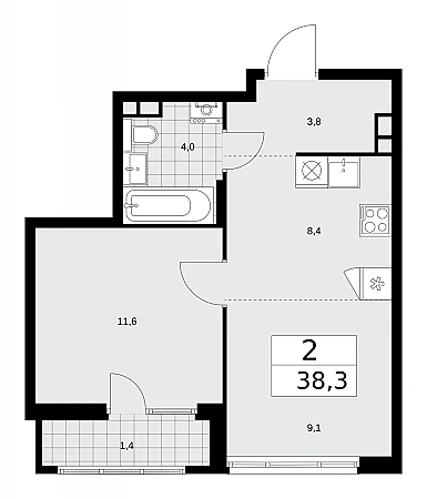 Двухкомнатная квартира с европланировкой и предчистовой отделкой в ЖК "Деснаречье" на 4 этаже. Общая площадь: 38.3 кв.м., жилая: 20.7 кв.м., суммарная площадь гостиной-столовой с кухонной зоной: 17.5 кв.м. Европейская планировка, кухня-гостиная - идеальный вариант для тех, кто любит часто принимать гостей. Комнаты изолированные, все окна выходят на одну сторону. В квартире одна лоджия, один совмещенный санузел. Высота потолков 2.99 м.