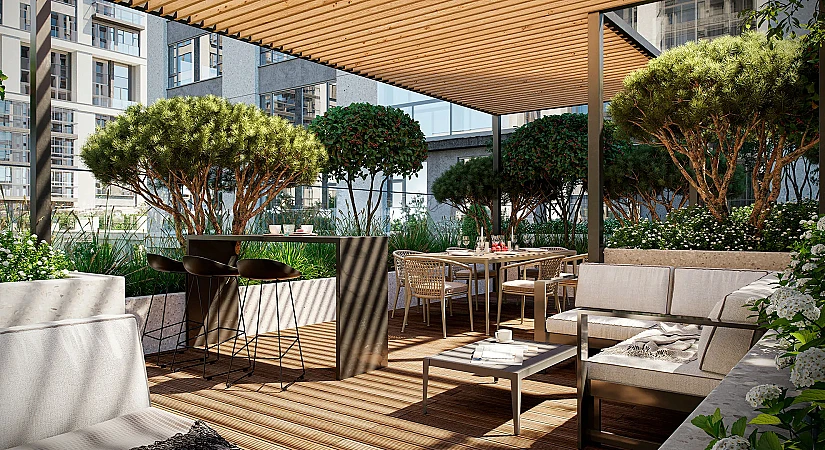 Квартал состоит из пяти разноэтажных башен. В самой высокой 150-метровой мы впервые применим тоннельную опалубку, которая позволяет сделать прочный и ровный каркас.Лобби «Издания» — не транзит из двора в квартиру. Это гостиные для деловых встреч, общения с соседями, решения бытовых задач, ожидания курьера. Высокие и прозрачные входные группы, домофон в тёплом тамбуре, понятная навигация в холле и на этажах.Под коммерцию выделены три уровня стилобата: на первых этажах расположится ритейл и полезные сервисы, выше — коммерческие помещения разной площади и конфигурации. В квартале появится двухэтажный детский центр с собственной террасой. А в деловом кластере, кроме офисов, расположится большой фуд-корт. Кафе и рестораны, супермаркет, медицинский и спортивный центры, стоматология, соседское комьюнити и детский развлекательный комплекс — квартал создаст новые точки притяжения и сформирует активный пешеходный трафик.