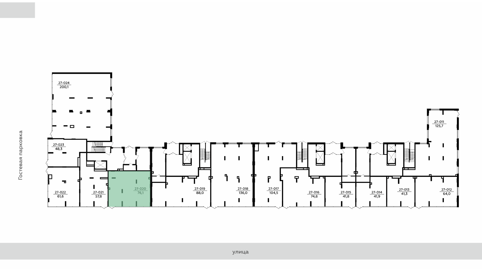 . Вход с парковки через центральный лобби, возможно сделать отдельные входные группы с улицы.