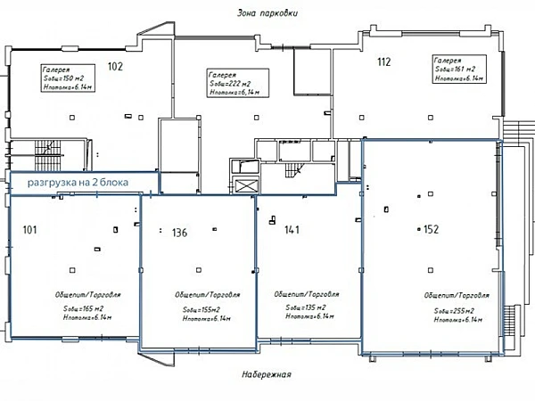 . • с набережной, блоки 165м2, 155м2, 135 м2, 255 м2, высота потолка 6м, отдельный вход;