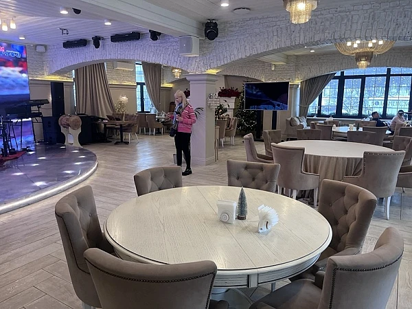 . 1 этаж - зал на несколько столов, ресепшн, оборудованная летняя терраса,