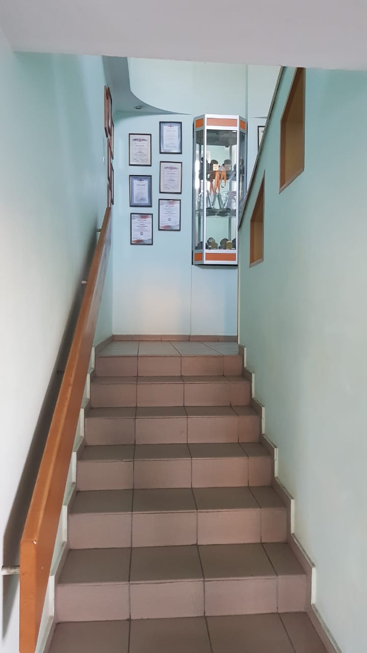 . 3 входа в здание, 2 лестницы.