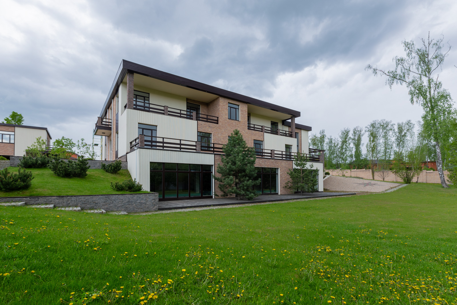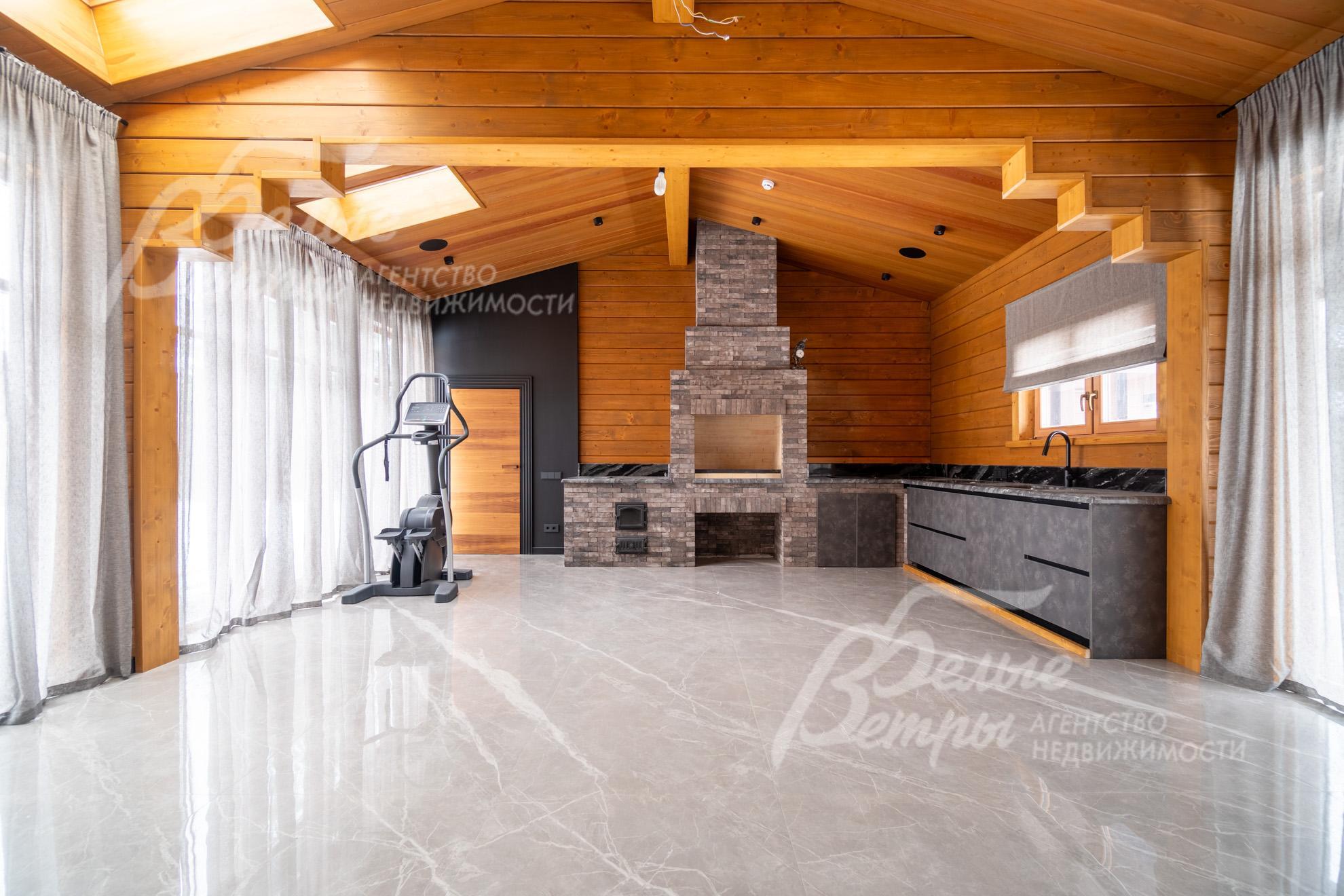 Новый меблированный дом из клеёного бруса, построенный в духе современной архитектуры. В едином ансамбле площадью более 1400 кв.м главный дом, просторная спа‑зона с большим бассейном, гостевой дом, квартира для персонала и гараж. Дом окружают террасы площадью 370 кв.м. Интерьер оформлен в актуальных дизайнерских тенденциях отделочными материалами премиального уровня. Высокие потолки, большая площадь остекления и декоративные детали из ценных пород дерева создают атмосферу простора и уюта. В планировке: гостиная со вторым светом, кинозал с экраном 135, летняя кухня с печью, спортзал, хамам, баня, купель на террасе. Дом стоит на большом лесном участке с сохранённым и облагороженным природным ландшафтом. Участок находится в живописном охраняемом коттеджном посёлке рядом с Москвой.