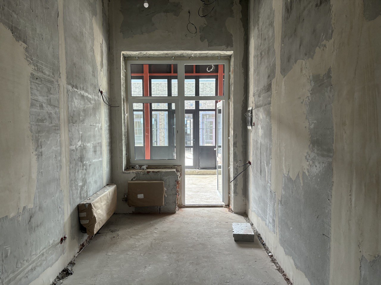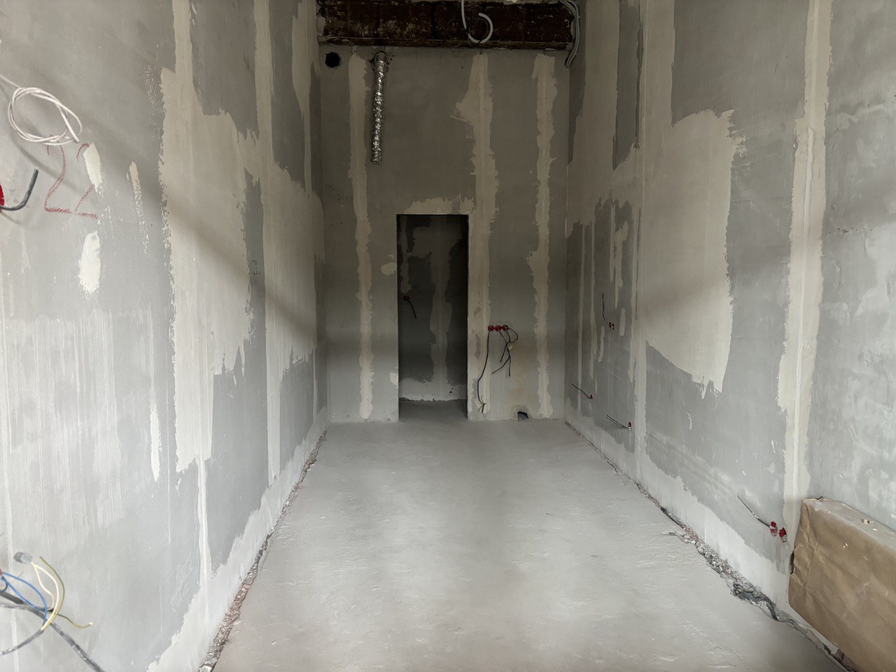 Под чистовую отделку. Установлены: качественная входная дверь, вытяжная вентиляция, радиатор отопления, электросчетчик, автомат на 5 кВт, мокрая точка.