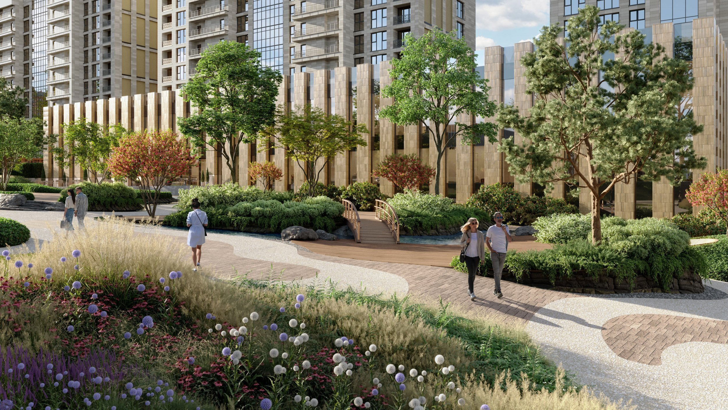 Расположение комплекса «Бадаевский» даёт возможность одинаково быстро и удобно добираться как до Кремля, так и до Рублёвки — благодаря Кутузовскому проспекту. А наличие собственной набережной позволяет наслаждаться близостью воды, прогулками на речных трамвайчиках, красивыми видами и передовым общественным пространством.Архитектура уступает место ландшафту: новые дома подняты вверх, благодаря чему на уровне земли освобождается просторная (4 га) территория для благоустройства и озеленения.Современная часть комплекса высоко парит над исторической, которая сохраняет самостоятельность, восстанавливается и получает роль общественного пространства. Проходящие сквозь этажи опоры высотой 35 метров обеспечивают максимальную жёсткость всей конструкции. В результате она превосходит по устойчивости здание на привычном фундаменте.