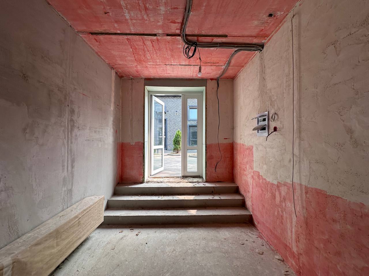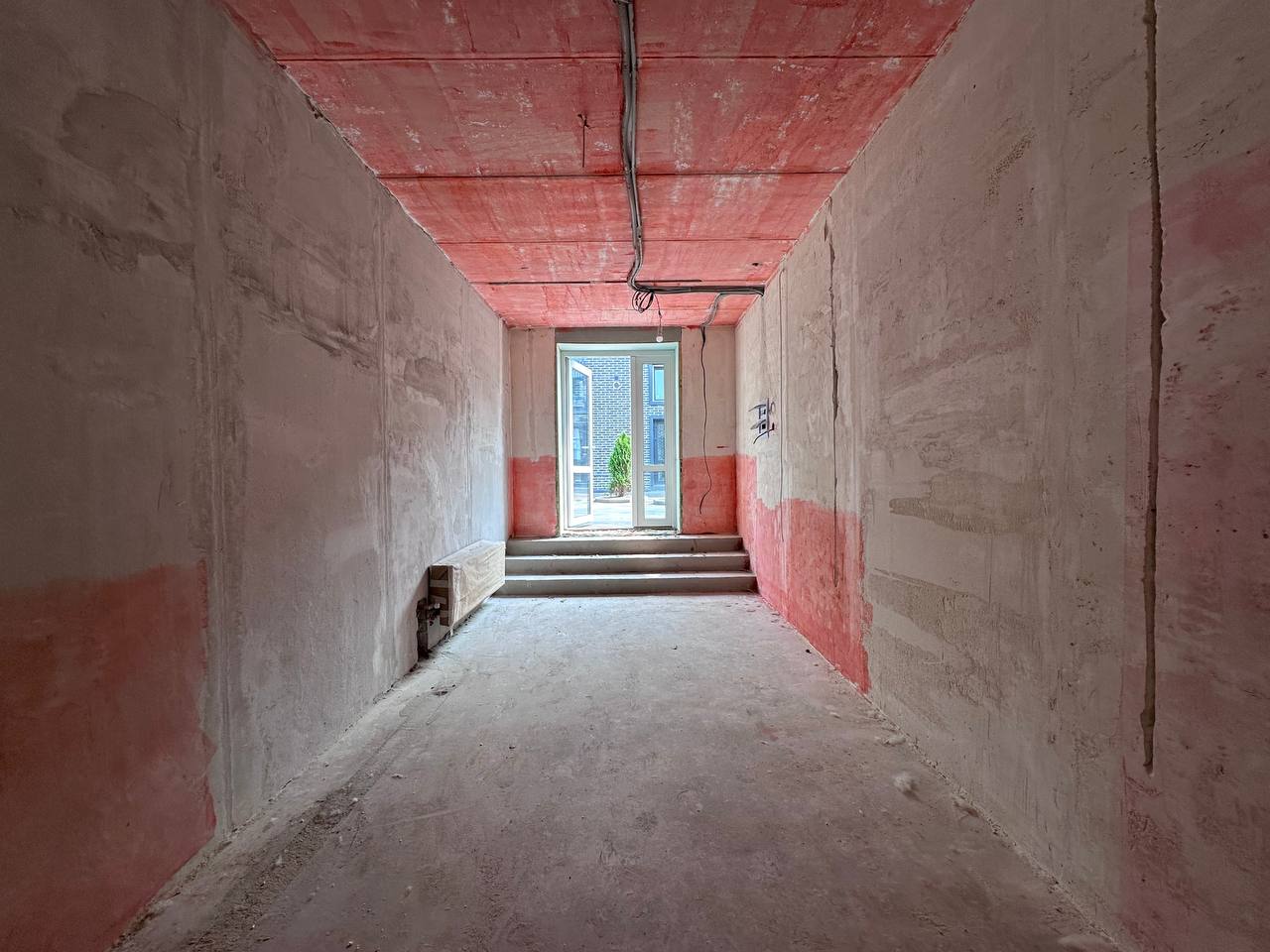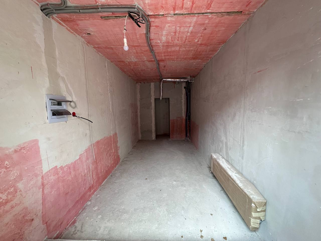 Помещение под чистовую отделку. Установлены: качественная входная дверь, вытяжная вентиляция, радиатор отопления, электросчетчик, автомат на 5 кВт, выходы хв/гв.