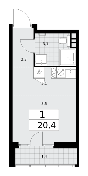 Продаётся квартира-студия, площадью 20,4 кв. м на 14-м этаже дома комфорт-класса в ЖК "Деснаречье". Квартира с функциональной планировкой: большие окна, высота потолка 2,99 м, балкон.