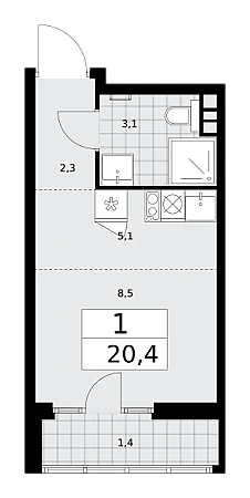 Продаётся квартира-студия, площадью 20,4 кв. м на 13-м этаже дома комфорт-класса в ЖК "Деснаречье". Квартира с функциональной планировкой: большие окна, высота потолка 2,99 м, балкон.