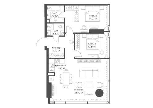 Купить 2к квартиру 67 м² в ЖК Родина Парк