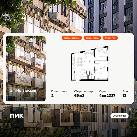 Купить 2к квартиру 60 м² в ЖК Дмитровское небо