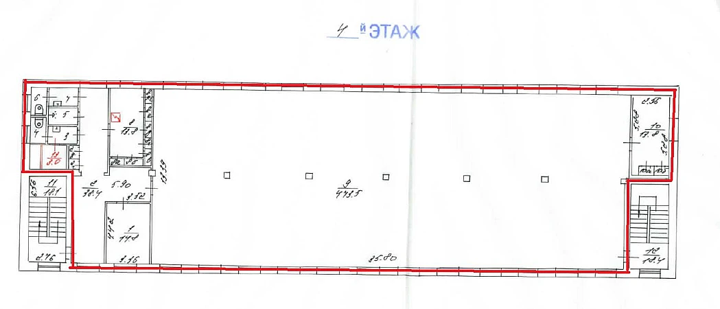 Площадь пoмещeния 575,5 м2 пo БТИ. Отдельный 4 этаж. Высота потолков 4,5 м. Смешанная планировка - open space (473,5 м), 3 кабинета, коридор, санузел.