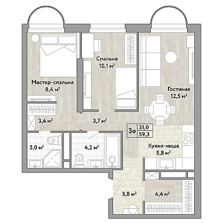 Купить 2к квартиру 62 м² в ЖК 2-й Иртышский
